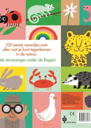 ‘100 eerste woordjes in de natuur’ is een prachtig kleurrijk en groot kartonboek vol belangrijke eerste woordjes voor peuters. Spelenderwijs leren ze zo hun vocabulaire uit te breiden. Elk woordje in dit stevige, grote kinderboek leert nieuwsgierige peuters meer over de natuur en de dieren om hen heen. Zoals in ieder deel van deze serie zijn de pagina’s ook nu weer onderverdeeld in heldere categorieën: in de tuin vind je misschien een schuur en een lieveheersbeestje, in het bos kom je eerder een eekhoorn tegen, of een dennenboom. En op safari in de jungle misschien wel een kameleon en een palmboom!