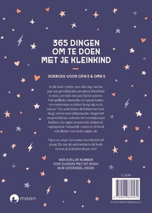 Voor elke dag van het jaar een geweldig idee om met je kleinkind te doen, een idee dat past bij het seizoen. Van buitenactiviteiten, spelletjes, knutselen en samen koken, tot voorleestips en lekker bezig zijn in de natuur. Van activiteiten als kleien met zoutdeeg, kliederen met zelfgemaakte vingerverf en goocheltrucs oefenen, tot worteltjestaart bakken, een eigen moestuintje maken en vogelspotten. Natuurlijk vind je in dit boek ook ideeën voor leuke dagjes uit.