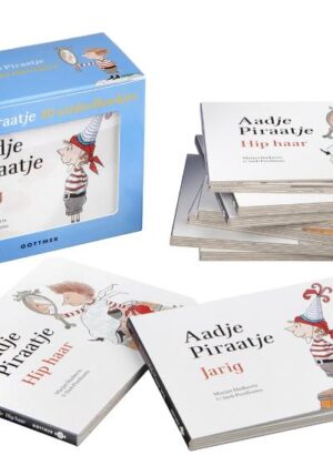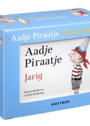 De iconische illustraties van Sieb Postuma zijn een perfecte combinatie met de tekst van Marjet Huiberts en de twee feestelijke verhaaltjes ‘Jarig’ en ‘Hip haar’ passen bij elke gelegenheid. Samen met zijn vader vaart Aadje Piraatje over de wereldzeeën op een piratenschip. Het is bijna elke avond feest aan boord, want de vrolijke piratenbende vindt altijd wel een reden om slingers op te hangen en de rum tevoorschijn te halen. De Aadje Piraatje-uitdeelboekjes zijn de perfecte alternatieve traktatie: cadeauboekjes die lekker lang meegaan en een blijvende herinnering zullen zijn.
