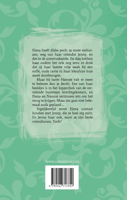 Zul je altijd zien. Moet je verhuizen in de vakantie en dan hebben je ouders het zo druk dat jij de laatste vakantiedagen bij een suffe tante moet doorbrengen. Dat overkomt Elena. En dus zit ze daar, in het huis vol beeldjes van haar oude tante Nannie.