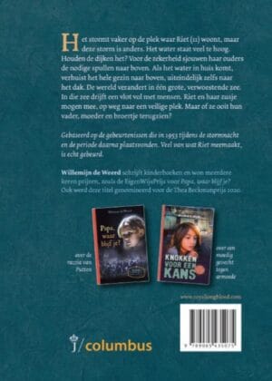 Het stormt vaker op de plek waar Riet (11) woont, maar deze storm is anders. Zelfs haar vader maakt zich zorgen. Eerst worden er spullen naar boven gesjouwd. Daarna verhuizen Riet en haar familie ook naar boven. Uiteindelijk van de zolder zelfs naar het dak.