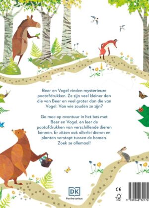 Ga mee op avontuur in het bos met Beer en Vogel, en leer de pootafdrukken van verschillende dieren kennen. Er zitten ook allerlei dieren en planten verstopt tussen de bomen. Zoek ze allemaal!