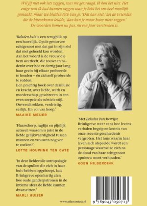 Beladen huis is het relaas van een vrouw na het overlijden van haar man. Na zijn dood dringt tot haar door dat hun huis overwoekerd is geraakt met spullen en zwaarmoedigheid. Terwijl zij de kamers opruimt, ontstaat langzaam weer ruimte in haar gevoelens voor hem. Ze wil terugvinden hoe hij ooit was, hoe zij ooit was en begrijpen waarom hun leven samen is gelopen zoals het is gelopen. Herinneringen komen terug, de doorwerking van het verleden wordt zichtbaar, materiële en psychische verwerking gaan hand in hand. Beladen huis is een moedige memoir over de ruimte die je inneemt in een relatie, in een gezin, in de maatschappij, als moeder en als vrouw, over eenzaamheid, angst en de keuzes die we maken uit liefde.
