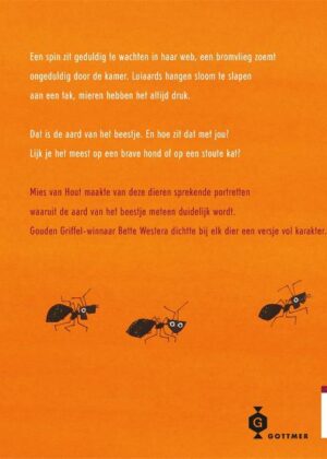 Op elke spread staan er twee dieren tegenover elkaar die soms wel op elkaar lijken, maar die juist hele verschillende karakters hebben. Een spin zit geduldig te wachten in haar web, een bromvlieg zoemt ongeduldig door de kamer. Luiaards hangen sloom te slapen aan een tak, mieren hebben het altijd druk. Dat is de aard van het beestje. En hoe zit dat met jou? Lijk jij het meest op een brave hond of op een stoute kat? Zo biedt dit boek aanknopingspunten om met kinderen interessante gesprekken te voeren, over de aard van dieren én mensen.