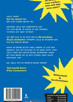 ‘Ik kan een nieuwe broer krijgen? Op het internet?’ mompelde Johnny. ‘O grote genadige goden!’ Iedereen droomt weleens van een leukere broer of zus. Maar voor Johnny wordt deze droom opeens een mogelijkheid met www.broederruil.com! Wat is nou een beter idee dan het vervangen van zijn stomme broer Ted door een supercoole broer? Maar het vinden van een supercoole broer is nog niet zo makkelijk, ontdekt Johnny, wanneer Broederruil hem een meute bizarre vervangers stuurt: eerst een zeemeerjongen, dan een broer die door zeekatten is opgevoed en dan ook nog eens de geest van Henry de Achtste! Wie zal de volgende zijn? Opeens lijkt Ted toch niet zo erg meer. Maar kan Johnny hem ooit terugkrijgen?