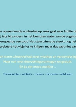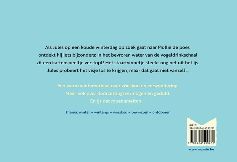 Als Jules op een koude winterdag op zoek gaat naar Mollie de poes, ontdekt hij iets bijzonders: in het bevroren water van de vogeldrinkschaal zit een kattenspeeltje verstopt! Het staartvinnetje steekt nog net uit het ijs.