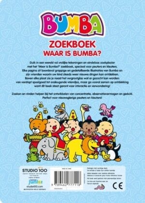 Duik in een wereld vol kleuren, verrassingen, vrolijke tekeningen en eindeloos zoekplezier met het ‘Waar is Bumba?’ zoekboek, speciaal voor peuters en kleuters. Elke pagina zit boordevol leuke en gedetailleerde illustraties van Bumba en zijn vrienden waarin uw kind steeds weer nieuwe dingen kan ontdekken. Naast het vergrootglas zie je wat er gezocht kan worden: van verstopt speelgoed tot ondeugende vriendjes, maar ga vooral samen op ontdekking want de kleurrijke platen staan garant voor interactie en verwondering! Zoeken en vinden helpen bij het ontwikkelen van concentratie, observatievermogen en geduld. Perfect voor nieuwsgierige peuters en kleuters!