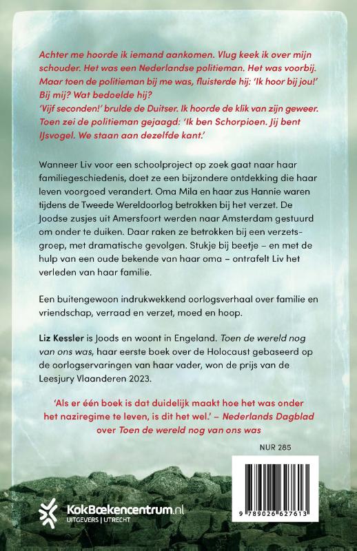 Codenaam IJsvogel van prijswinnend auteur Liz Kessler is een meeslepende jeugdroman voor lezers vanaf 12 jaar over het oorlogsverleden van de familie van Liv. Wanneer Liv voor een schoolproject op zoek gaat naar haar familiegeschiedenis, doet ze een bijzondere ontdekking die haar leven voorgoed verandert. Oma Mila en haar zus Hannie waren tijdens de Tweede Wereldoorlog betrokken bij het verzet. De Joodse zusjes uit Amersfoort werden naar Amsterdam gestuurd om onder te duiken. Daar raakten ze betrokken bij een verzetsgroep, met dramatische gevolgen. Stukje bij beetje – en met de hulp van een oude bekende van haar oma – ontrafelt Liv het verleden van haar familie. Een buitengewoon indrukwekkend verhaal over familie en vriendschap, verraad en verzet, moed en hoop.