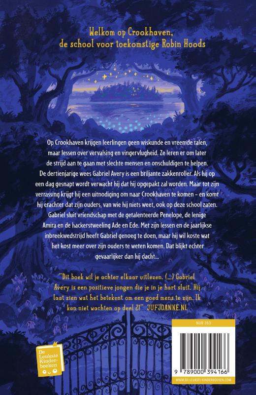 Het kinderboek Crookhaven, school voor dieven is het meeslepende eerste deel in een trilogie over zelfgekozen familie, diefstal en wat het werkelijk betekent om een goed mens te zijn. Voor fans van M.G. Leonard, Anthony Horowitz en Harry Potter vanaf 9 jaar.