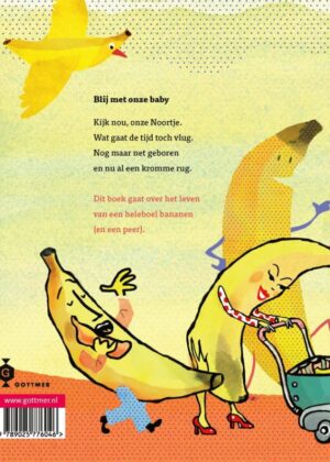 Erik van Os, succesvol auteur van onder andere (kinder)boeken, liedjes, versjes en leesmethodes, schreef absurde versjes over ieders gele lievelingsfruit waarvan jonge en oude lezers krom zullen liggen. De kleurrijke illustraties van Jan Jutte, illustrator van het Prentenboek van het Jaar 2023, wekken sommige bananen tot leven, maar sommige blijven gewoon, nou ja, banaan!