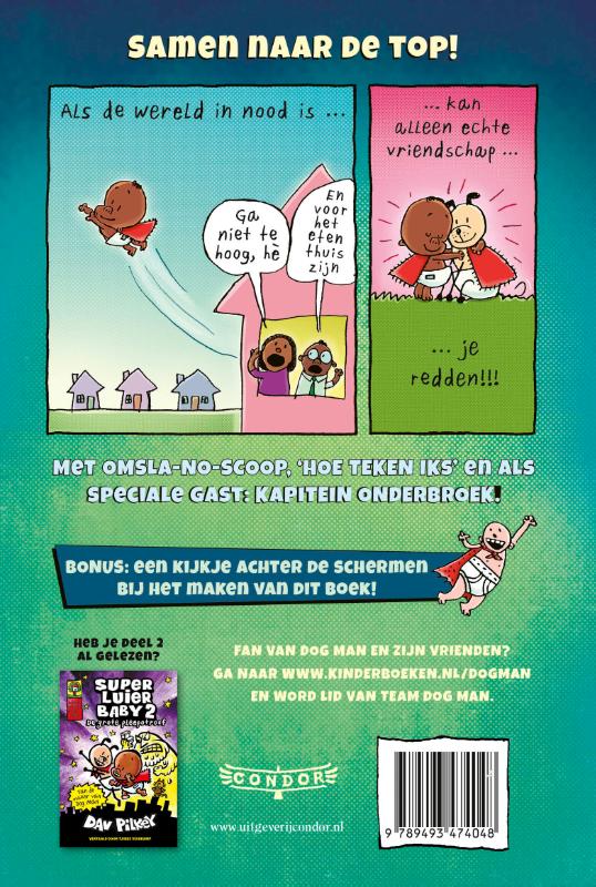 Deze kleine maar dappere held mag het opnemen tegen een gemene slechterik die op zijn superkrachten uit is. Is Super Luier Baby in staat om hem op tijd te stoppen, voordat hij de hele planeet overneemt…? Lees het allemaal in dit knallend kleurrijke, nieuwste boek van Dav Pilkey, vertaald door Tjibbe Veldkamp.