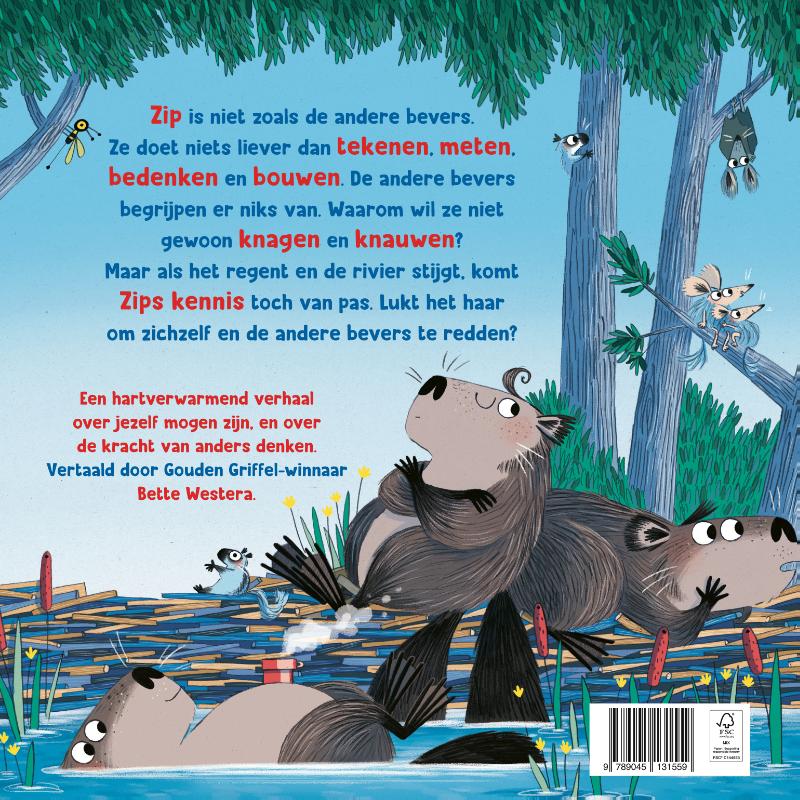 Zip is niet zoals de andere bevers: ze hamert en zaagt liever dan dat ze knauwt en knaagt. De andere bevers vinden het maar gek. Dat is toch niets voor een bever, al dat meten, bedenken en bouwen?