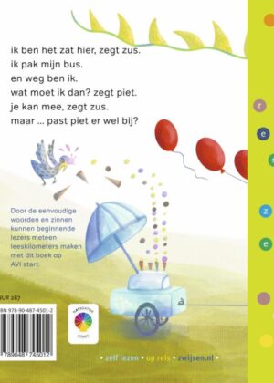 Zus gaat op reis met haar bus. Past Piet er wel bij in de volle bus? En wie komen ze onderweg nog meer tegen? Grappig verhaal over een gezellige reis op AVI Start. Iedere beginnende lezer in groep 3/leerjaar 1 wil laten zien hoe goed hij al kan lezen. Hoe leuk is het om dat te laten zien met dit herkenbare verhaal vol korte woorden en eenvoudige zinnen? Dat is nog eens leuk leeskilometers maken.