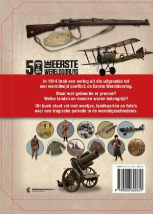 50 dingen die je moet weten over De Eerste Wereldoorlog! In 1914 brak een oorlog uit die uitgroeide tot een wereldwijd conflict. Lees hoe de gebeurtenissen zich ontwikkelden, ontmoet de belangrijkste personen in het conflict en ontdek de langdurige impact van de Eerste Wereldoorlog. Vol met weetjes, landkaarten en foto’s biedt dit full-color boek alle informatie over een tragische periode in de wereldgeschiedenis. In deze serie verschenen eerder 50 dingen over ‘Extreem weer’, ‘De Tweede Wereldoorlog’, ‘Uitvindingen’, ‘Het heelal’ en ‘Het menselijk lichaam’.