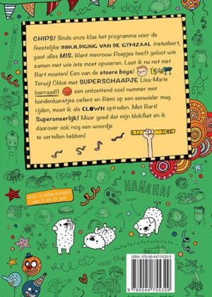 Chips! Sinds onze klas het programma voor de feestelijke inhuldiging van de gymzaal instudeert, gaat alles mis. Want mevrouw Poepjes heeft geloot wie samen met wie iets moet opvoeren. Laat ik nu net met Bart moeten! Een van de stoere boys! Terwijl Chloë met superschaapje Lisa-Marie (verraad!) een ontzettend cool nummer met hondenkunstjes oefent en Rémi op een eenwieler mag rijden, moet ik als clown optreden. Met Bart! Superoneerlijk! Maar goed dat mijn blokfluit en ik daarover ook nog een woordje te vertellen hebben!