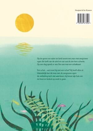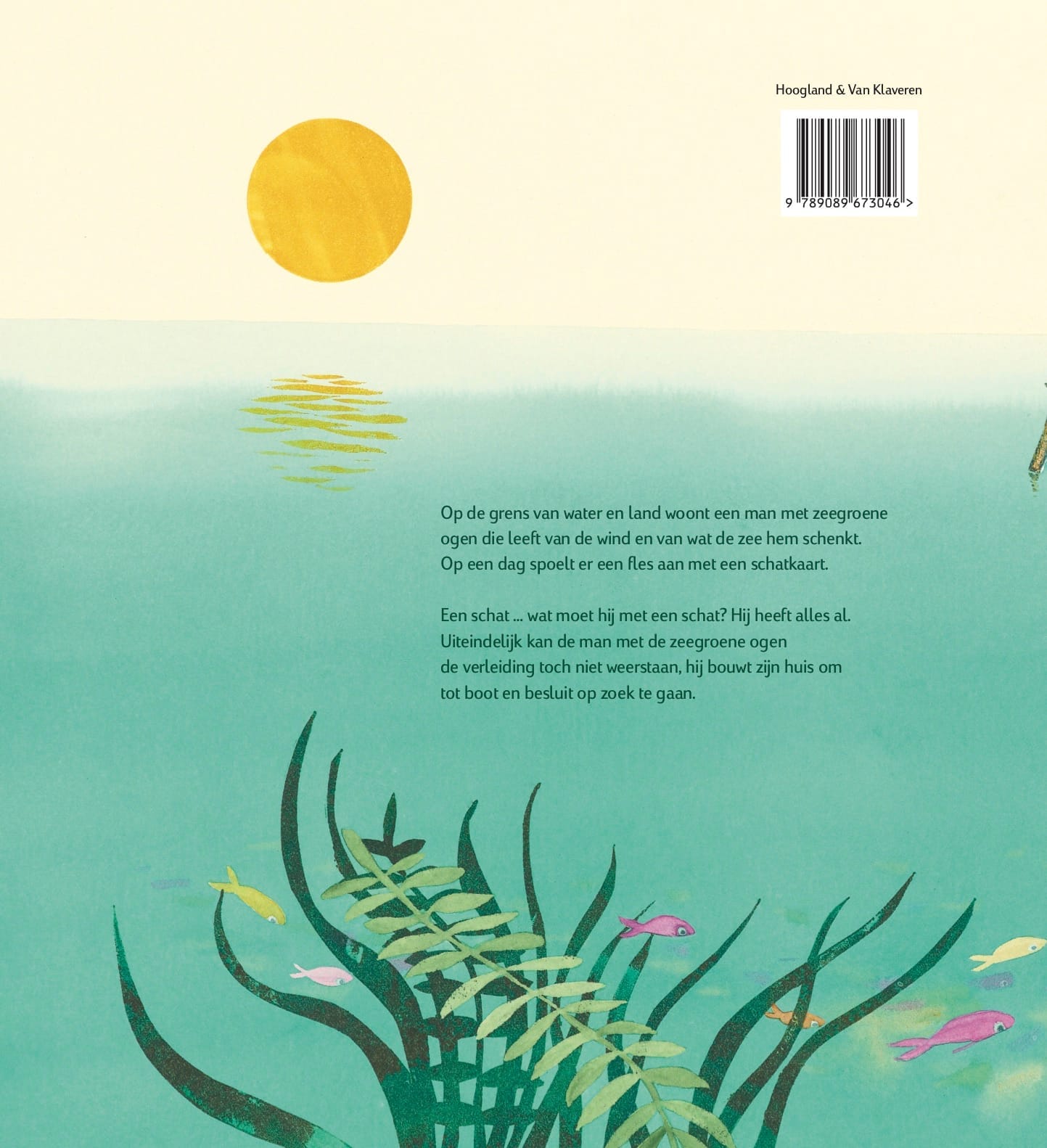 Een schat … wat moet hij met een schat? Hij heeft alles al. Uiteindelijk kan de man met de zeegroene ogen de verleiding toch niet weerstaan, hij bouwt zijn huis om tot boot en besluit op zoek te gaan.