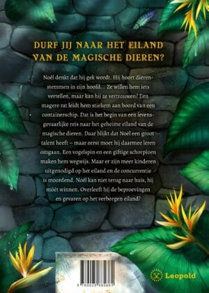 Noël denkt dat hij gek wordt. Hij hoort dierenstemmen in zijn hoofd… Ze willen hem iets vertellen, maar kan hij ze vertrouwen? Een magere rat leidt hem stiekem aan boord van een containerschip. Dat is het begin van een levensgevaarlijke reis naar het geheime eiland van de magische dieren. Daar blijkt dat Noël een groot talent heeft – maar eerst moet hij daarmee leren omgaan. Een vogelspin en een giftige schorpioen maken hem wegwijs. Maar er zijn meer kinderen uitgenodigd op het eiland en de concurrentie is moordend. Noël kan niet terug naar huis, hij móét winnen. Overleeft hij de beproevingen en gevaren op het verborgen eiland?