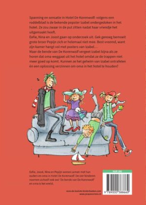 Eefie en kleine Nina zijn door het dolle heen. Volgens een roddelblad is de bekende popster Izabel de Groot ondergedoken in De Korenwolf. Ze zou zwaar in de put zitten. De ouders van Eefie en Nina zeggen dat het allemaal grote onzin is. Toch gaan Eefie, Nina en Joost op onderzoek uit. Gek genoeg bemoeit grote broer Pepijn zich er helemaal niet mee – en dat terwijl zijn kamer vol posters van Izabel hangt… Maar de kinderen vergeten Izabel bijna als ze horen dat oma weggaat uit het hotel. Oma vindt het traplopen te lastig worden. Maar oma die weggaat, dat mag niet! Kan de bende een oplossing bedenken om haar te laten blijven?