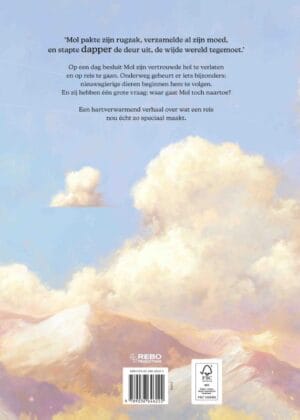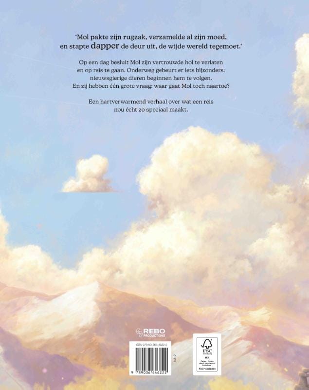 Op een dag besluit Mol zijn vertrouwde hol te verlaten en op reis te gaan. Onderweg gebeurt er iets bijzonders: nieuwsgierige dieren beginnen hem te volgen. En zij hebben één grote vraag: waar gaat Mol toch naartoe? Een hartverwarmend verhaal over wat een reis nou écht zo speciaal maakt.