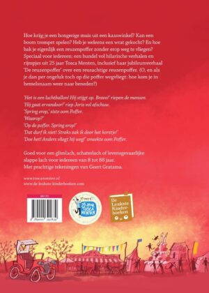 Over een gekochte wrat, een muis in een kaaswinkel, een lintwormdieet, een jongen die een hazelnoot werd, een opgegeten spin en nog VEEL meer: inclusief het hagelnieuwe jubileumverhaal ‘De Reuzenpoffer’ over een reusachtige reuzenpoffer. Goed voor een glimlach, schaterlach of levensgevaarlijke slappe lach voor iedereen van 8 tot 88 jaar.