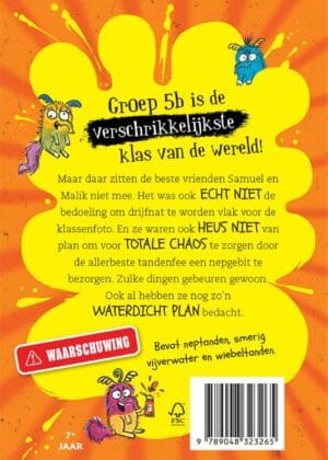 Maar daar zitten de beste vrienden Samuel en Malik niet mee. Het was ook ECHT NIET de bedoeling om drijfnat te worden vlak voor de klassenfoto. En ze waren ook HEUS NIET van plan om voor TOTALE CHAOS te zorgen door de allerbeste tandenfee een nepgebit te bezorgen. Zulke dingen gebeuren gewoon. Ook al hebben ze nog zo’n WATERDICHT PLAN bedacht.