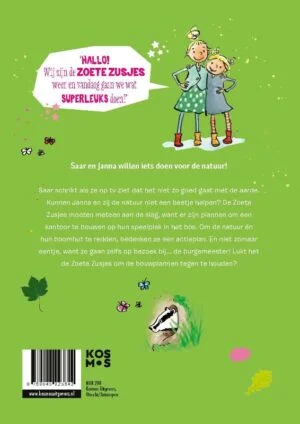 In ‘De Zoete Zusjes helpen de natuur’, geschreven door Hanneke de Zoete, zetten Saar en Janna alles op alles om de natuur te redden en hun speelplek te beschermen.