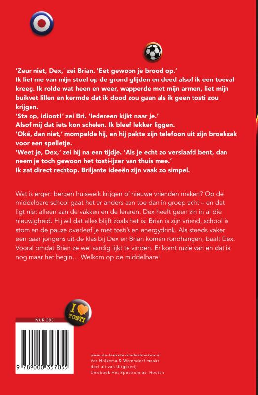 Als je naar de middelbare school gaat, is het tijd om nieuwe vrienden te maken. Maar daar heeft Dex helemaal geen zin in. Gelukkig zit Brian, Dex’ beste vriend van de basisschool, ook bij hem in de klas. Ze zitten alle lessen naast elkaar en in de pauzes delen ze tosti’s en energydrink. Als je al een beste vriend hebt, is dat mooi genoeg, toch? Dex vindt van wel. Alles gaat helemaal prima, totdat een paar jongens uit de klas zich in de pauzes met Dex en Brian beginnen te bemoeien.
