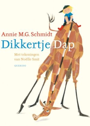 ’s Morgens vroeg om kwart over zeven loopt Dikkertje Dap de dierentuin binnen. Met een trap, want hij gaat de giraffe een suikerklontje voeren. De giraf blijkt ontzettend aardig. Hij luistert naar alle verhalen van Dikkertje Dap en daarna mag Dikkertje van die heeeeel lange nek glijden.
