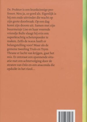 Dr. Proktor is een krankzinnige professor. Nou ja, zo goed als. Eigenlijk is hij een oude uitvinder die wacht op zijn grote doorbraak. Als hij er samen met zijn buurmeisje Lise en haar merkwaardige vriendje Bulle in slaagt superkrachtig schetenpoeder te maken, lijkt zijn droom eindelijk uit te komen. Maar de meedogenloze, zwaarlijvige tweeling Truls en Trym Thrane gooit roet in het eten. Er ontstaat een dramatische situatie, met onverwachte gevolgen: een achtervolging door het riool van Oslo, opduikende anaconda’s, en zelfs de NASA krijgt lucht van het schetenpoeder…