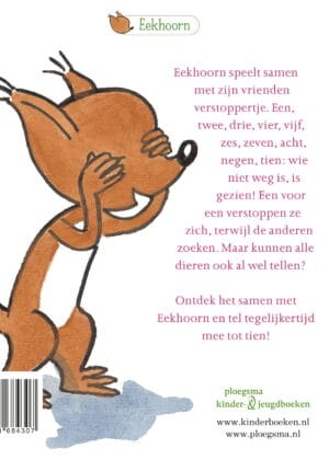 Eekhoorn speelt samen met zijn vrienden verstoppertje. Een, twee, drie, vier, vijf, zes, zeven, acht, negen, tien: wie niet weg is, is gezien! Een voor een verstoppen ze zich, terwijl de anderen zoeken. Maar kunnen alle dieren ook al wel tellen? Ontdek het samen met Eekhoorn en tel tegelijkertijd mee tot tien.