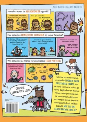 In dit knotsgekke weetjesboek maak je een boeiende en speelse tijdreis door duizenden jaren. Aan de hand van korte strips, geheime dagboeken en nieuwsflitsen maak je kennis met tal van mensen, dieren en voorwerpen die de loop van onze geschiedenis hebben bepaald. Wie zei dat geschiedenis saai is? Hoe slim waren de holbewoners eigenlijk? Hoe ontdekte Christoffel Columbus bij toeval Amerika? Wat ontdekte de Franse wetenschapper Louis Pasteur? Grappig, leerrijk en leuk!