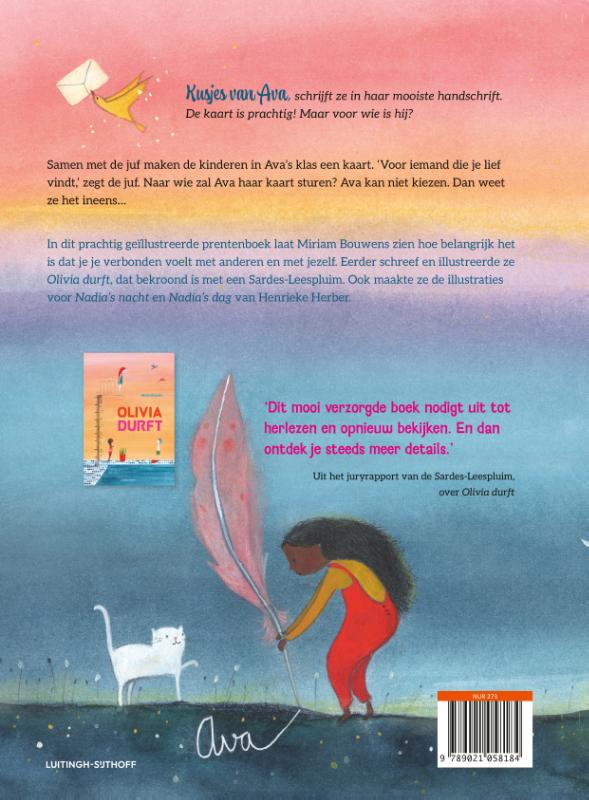 Samen met de juf maken de kinderen in Ava’s klas een kaart. ‘Voor iemand die je lief vindt,’ zegt de juf. Naar wie zal Ava haar kaart sturen? Juf Bibi is lief. Misschien stuurt ze de kaart wel naar haar. Of naar mama. Zij is als een huis met een kacheltje erin. Of is de kaart voor papa? Hij is de beste fietsenmaker van de stad. Of voor oma Senaida? Of buurmannen Sam en Guus? Ava kan niet kiezen. Dan weet ze het ineens…