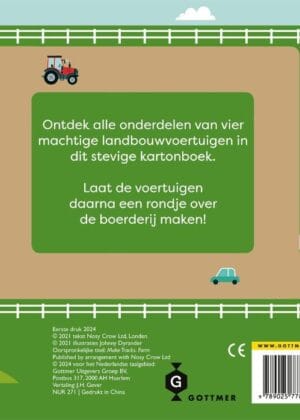 De boeken in de Een rondje met-reeks zijn allemaal een visueel en interactief feestje – en dat geldt zeker voor ‘Een rondje met de tractor’. Elk kartonboek in deze peuterboekenserie heeft plaatjes van coole voertuigen die je kunt laten rijden. Peuters en kleuters kunnen in dit deel genieten van stoere landbouwvoertuigen, zoals een rode tractor en een groene maaidorser, terwijl ze over hobbelige akkers en velden racen. Hoeveel schapen kunnen ze spotten? En waar verstopt de schaapshond zich? Met handige schuifjes kunnen kinderen de machines soepel over het erf bewegen. Dit is het perfecte boek voor kinderen vanaf 2 jaar oud die dol zijn op tractoren en zelf graag achter het stuur kruipen!