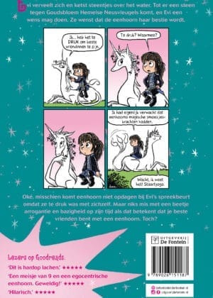 Evi verveelt zich en ketst steentjes over het water. Tot er een steen tegen een eenhoorn ketst. En Evi een wens mag doen. En ze wenst dat de eenhoorn in kwestie haar bestie wordt.