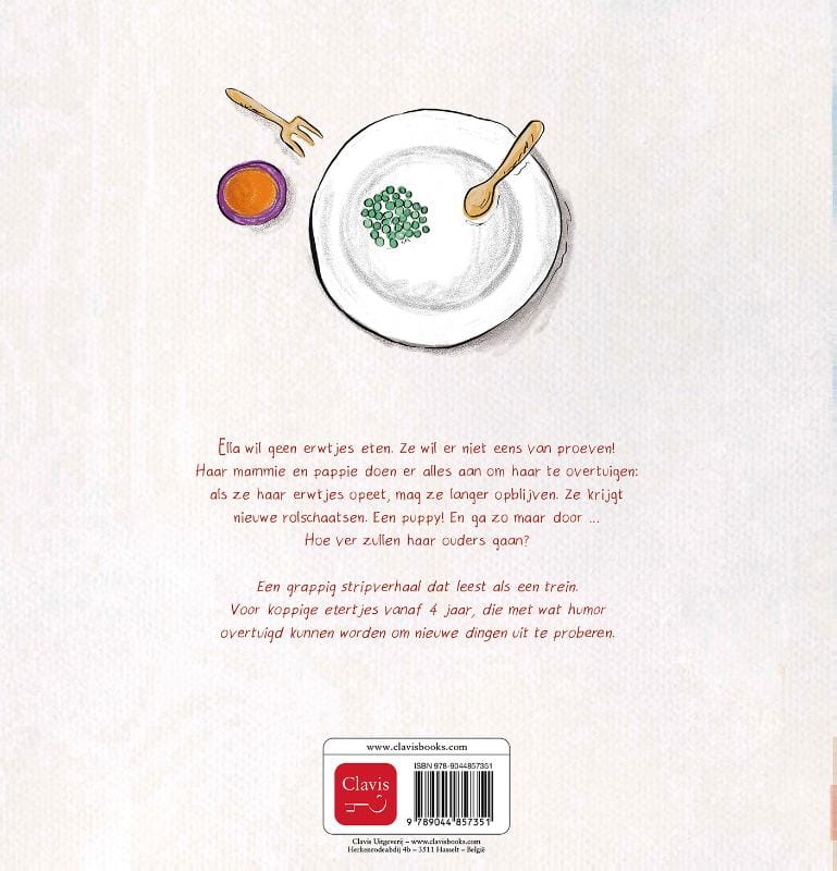 Ella wil geen erwtjes eten. Ze wil er niet eens van proeven! Haar mammie en pappie doen er alles aan om haar te overtuigen: als ze haar erwtjes opeet, mag ze langer opblijven. Ze krijgt nieuwe rolschaatsen. Een puppy! En ga zo maar door … Hoe ver zullen haar ouders gaan?