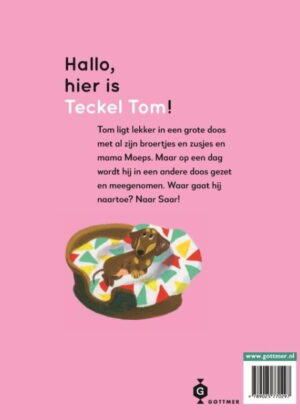 In ‘Hallo Teckel Tom!’ maak je kennis met Tom. Dit prentenboek in teckelperspectief is gecreëerd door de twee succesvolle prentenboekmakers Bette Westera en Noëlle Smit. In dit eerste boek in de nieuwe serie ontmoet je Teckel Tom. Hij woont met zijn broertjes, zusjes en moeder in een doos. Totdat hij in een andere doos wordt gestopt en bij een ander gezin terecht komt. Hij moet er even aan wennen, maar bij Saar en haar papa’s vindt hij een nieuw thuis.