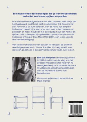 Er is iets heel bevredigends aan het eten aan een tafel die je zelf hebt gebouwd. In dit boek laat meubelmaker Erik Eje Almqvist zien hoe ook jij dit kunt bereiken. Aan de hand van simpele technieken neemt hij je stap voor stap mee in het bouwen van praktisch en mooi meubilair met eenvoudig hout, een hamer en spijkers. Alle ontwerpen zijn gebaseerd op de principes van de Italiaanse ontwerper Enzo Mari (1932-2020), een icoon van de doe-het-zelfbeweging.