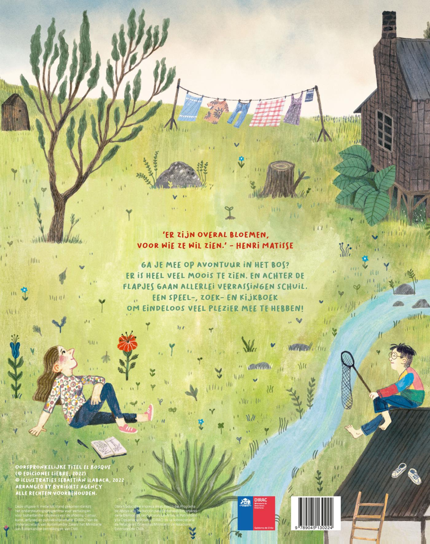 Dit tekstloze uitklapboek is meer dan 3 meter lang. Je kunt het rechtop zetten op de vloer en je helemaal omringen met dit prachtige bos. Aan de ene kant zie je een bos vol dieren die van alles beleven en aan de andere kant wordt het bos bewoond door mensen. Je kijkt er je ogen uit, zoveel bijzonders is er te zien. En achter de flapjes gaan nog meer verrassingen schuil.