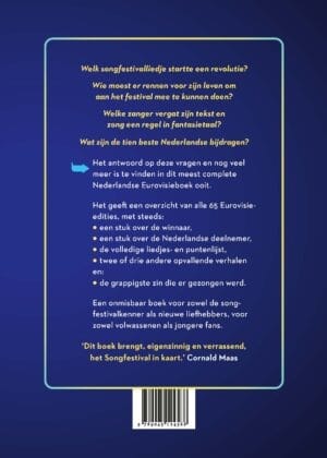 Edward van de Vendel schreef samen met Dave Boomkens en Jelmer Soes het eerste Songfestivalboek voor jong en oud. Het resultaat is een encyclopedie-achtig kijk- en leesboek met verhalen en bijzonderheden over alle edities, de liedjes en de winnaars. Maar ook met interessante lijstjes en zelden gepubliceerde foto’s, én met een voorwoord van Cornald Maas. Een onmisbaar boek waar de liefde voor het Songfestival van af spat en waar zelfs de échte fans nieuwe verhalen in zullen ontdekken.