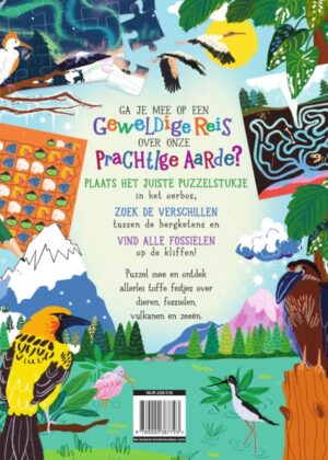 Plaats het juiste puzzelstukje in het oerbos, zoek de verschillen tussen de bergketen en haar weerspiegeling, en zoek de botjes van het dinosaurusfossiel bij elkaar. En weet jij eigenlijk wat het diepste meer ter wereld is? Dat vind je allemaal in Het grote aarde doeboek! Een vrolijke introductie tot onze fascinerende aarde voor nieuwsgierige kinderen vanaf 5 jaar.