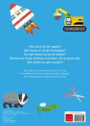 Wat zie je bij de kapper? Wat hoort er op de werkplaats? En wat herken je bij de bakker? Sammie en Suzie dromen over later, als ze groot zijn. Wat zullen ze dan worden?