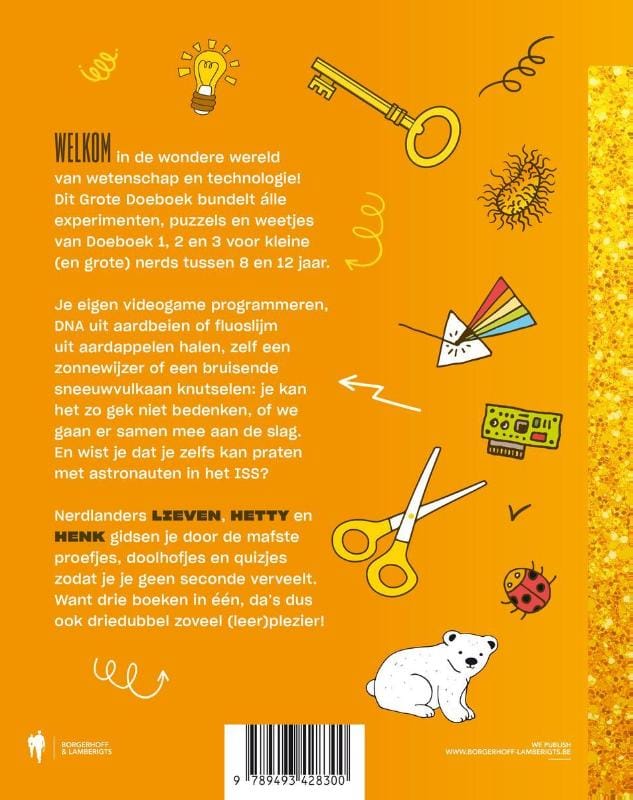 Welkom in de wondere wereld van wetenschap en technologie! Dit Grote Doeboek bundelt álle experimenten, puzzels en weetjes van Doeboek 1, 2 en 3 voor kleine (en grote) nerds.