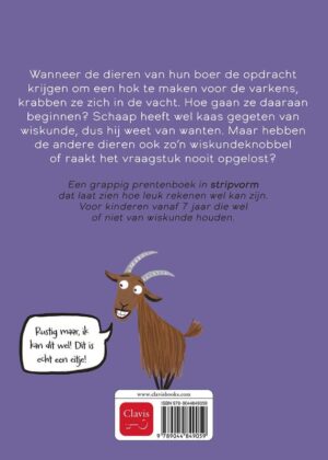 Wanneer de dieren van hun boer de opdracht krijgen om een hok te maken voor de varkens, krabben ze zich in de vacht. Hoe gaan ze daaraan beginnen? Het schaap heeft wel kaas gegeten van wiskunde, dus hij weet van wanten. Maar hebben de andere dieren ook zo’n wiskundeknobbel of raakt het vraagstuk nooit opgelost?