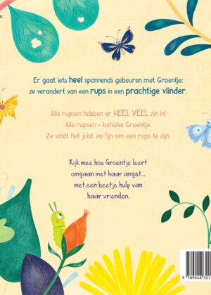 Er gaat iets heel spannends gebeuren met Groentje: ze verandert van een rups in een prachtige vlinder.