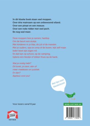 ‘Het kloeke moppenboek’ is een Theaterleesboek vol met fantastische moppen. Van de grappige avonturen van drie matrozen op een verlaten eiland tot de belevenissen van een rode ridder met flink veel pech, je kunt het zo gek niet bedenken of het komt wel langs. Dit boek is een ware schatkist voor moppentappers.