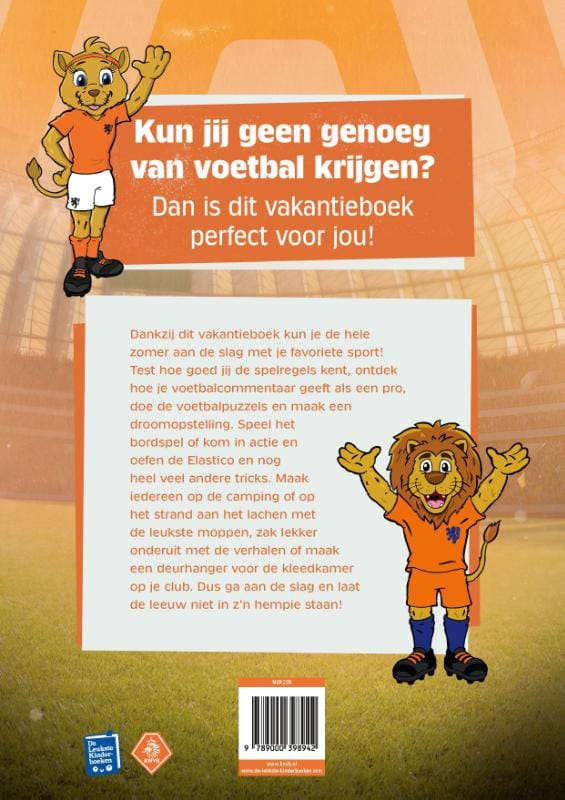 Balen dat er geen voetbal is tijdens de zomerstop? Helemaal niet nodig! Want met dit fijne doeboek kun je de hele vakantie bezig zijn met je favoriete sport. Test je voetbalkennis, ontdek op welke voetbalinternational jij het meest lijkt, leer toffe nieuwe trucs van Dutchy en Kicky, en maak de lekkerste snacks voor tijdens het kijken van een spannende wedstrijd. Maak je vrienden aan het lachen met de grappigste moppen of rust even lekker uit na een spannend potje voetbal met een puzzel of een fijn verhaal.