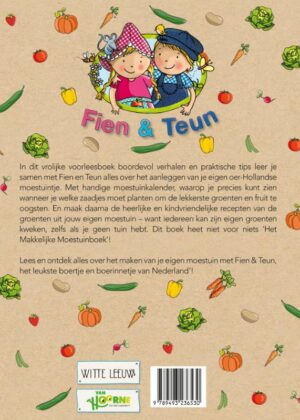 In dit vrolijke voorleesboek boordevol verhalen en praktische tips leer je samen met Fien en Teun alles over het aanleggen van je eigen oer-Hollandse moestuin. Met handige zaaikalender, waarop je precies kunt zien wanneer je wat moet zaaien om de lekkerste groenten en fruit te oogsten. En maak daarna de heerlijke en kindvriendelijke recepten van de groenten uit jouw eigen moestuin – want iedereen kan zijn eigen groenten kweken, zelfs als je geen tuin hebt. Dit boek heet niet voor niets het makkelijke moestuinboek!
