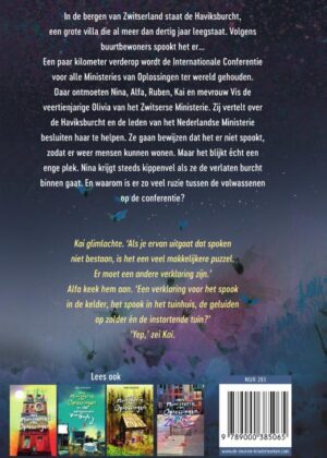 Een paar kilometer verderop wordt de Internationale Conferentie voor alle Ministeries van Oplossingen ter wereld gehouden. Daar ontmoeten Nina, Alfa, Ruben, Kai en mevrouw Vis de veertienjarige Elin van het Zwitserse Ministerie. Zij neemt de kinderen mee naar de Haviksburcht. Als ze bewijzen dat het er niet spookt, kunnen er weer mensen wonen. Ze gaan direct op zoek naar een logische verklaring voor alle enge verschijnselen. Maar waarom krijgt Nina steeds kippenvel als ze de verlaten burcht binnen gaat? En wat is er aan de hand op de conferentie, waar de volwassenen steeds bozer op elkaar worden?