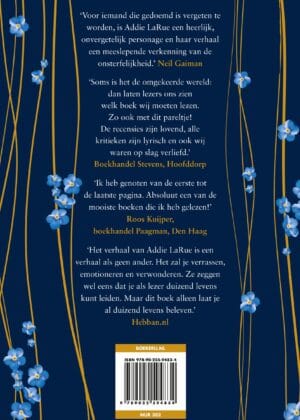 ‘Voor iemand die gedoemd is vergeten te worden, is Addie LaRue een heerlijk, onvergetelijk personage en haar verhaal een meeslepende verkenning van de onsterfelijkheid.’ Neil Gaiman