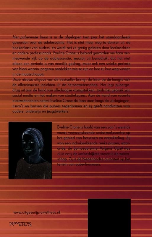 Het puberende brein is in de afgelopen tien jaar hét standaardwerk geworden over de adolescentie. Het is niet meer weg te denken uit de boekenkast van ouders, en wordt net zo gretig gelezen door leerkrachten en andere professionals. Eveline Crone is bekend geworden om haar vernieuwende kijk op de adolescentie, waarbij zij benadrukt dat het niet alleen een periode is van moeilijk gedrag, maar ook een unieke periode van bloei waarin jongeren ontdekken wie ze zijn en hoe zij hun weg vinden in de maatschappij.